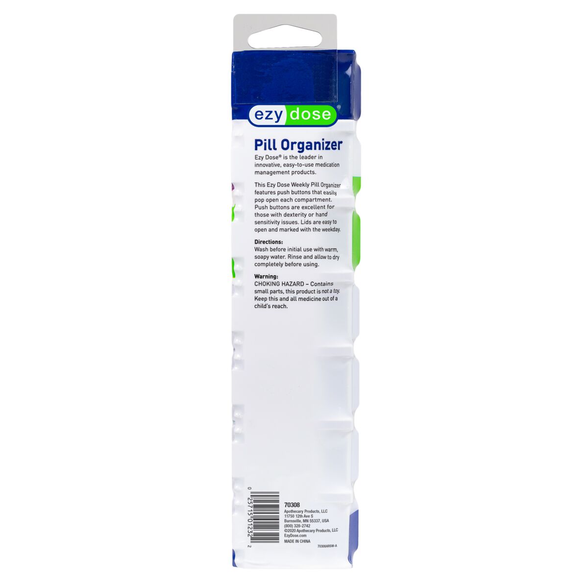 This Ezy Dose Weekly Pill Organizer features push buttons that easily pop open each compartment. Fun and bright rainbow lids easily identify the days of the week.