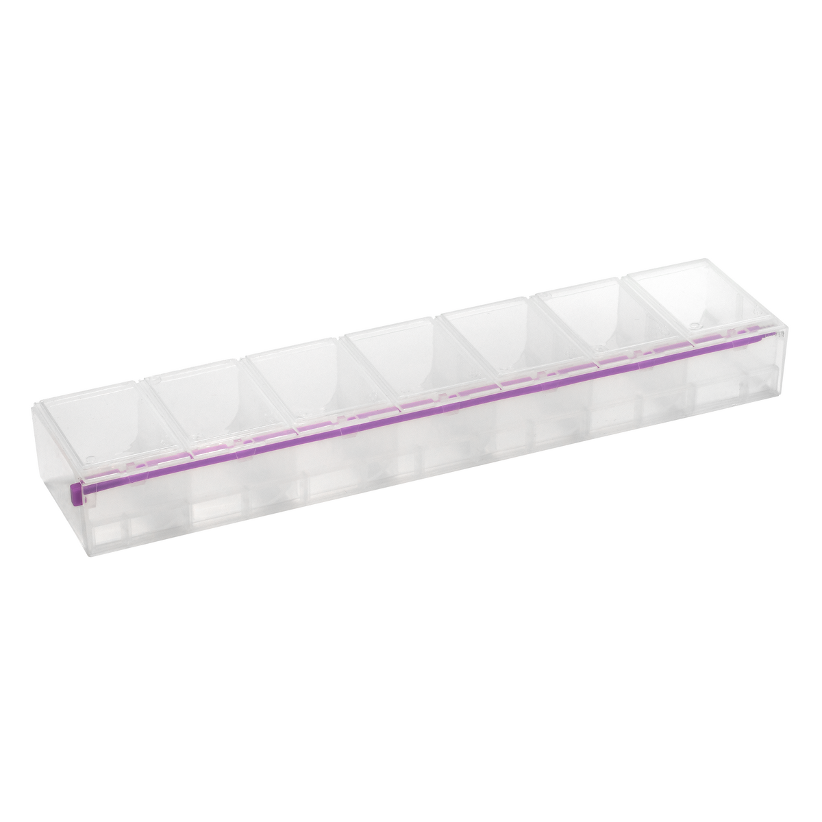 Create your own customized storage system with Craft Mates. Whatever your craft of choice, you can keep everything neat and tidy and right at hand when you need it. The patented lock-bar system of this organizer allows you to open one bin at a time, so there is no bin spillage or migration. Perfect for beads, jewelry findings, buttons, sequins, needles, pins, embellishments and more.