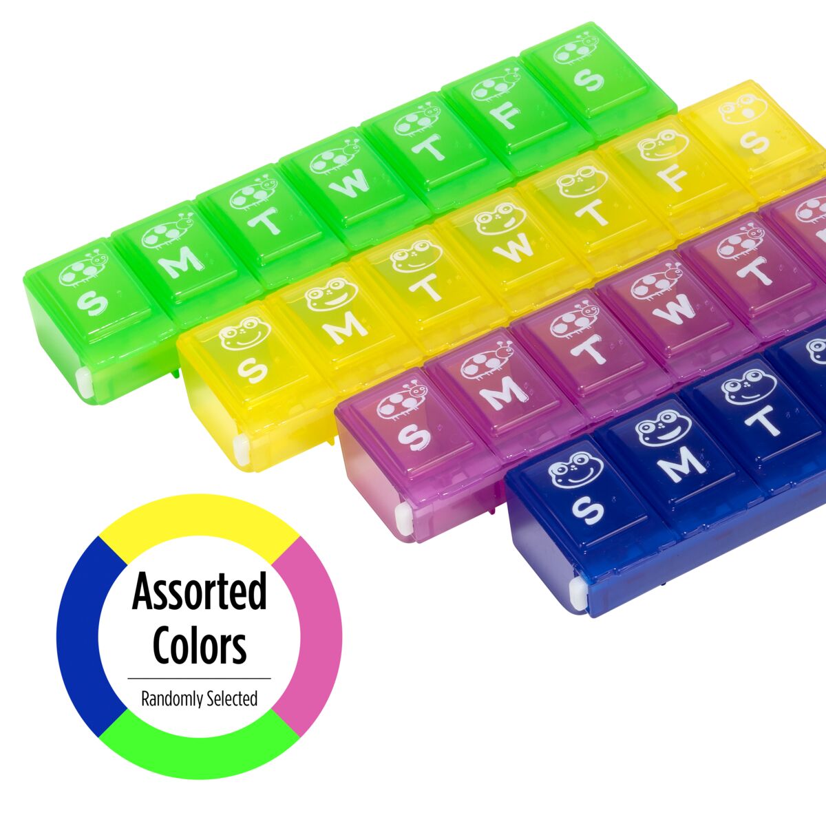 - VIBRANT COLORS & DESIGNS (MAY VARY): Bright, child-friendly colors and designs make organizing pills fun and engaging while improving adherence to daily routines. Please note, color and design may vary