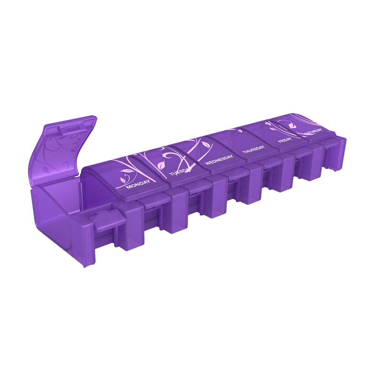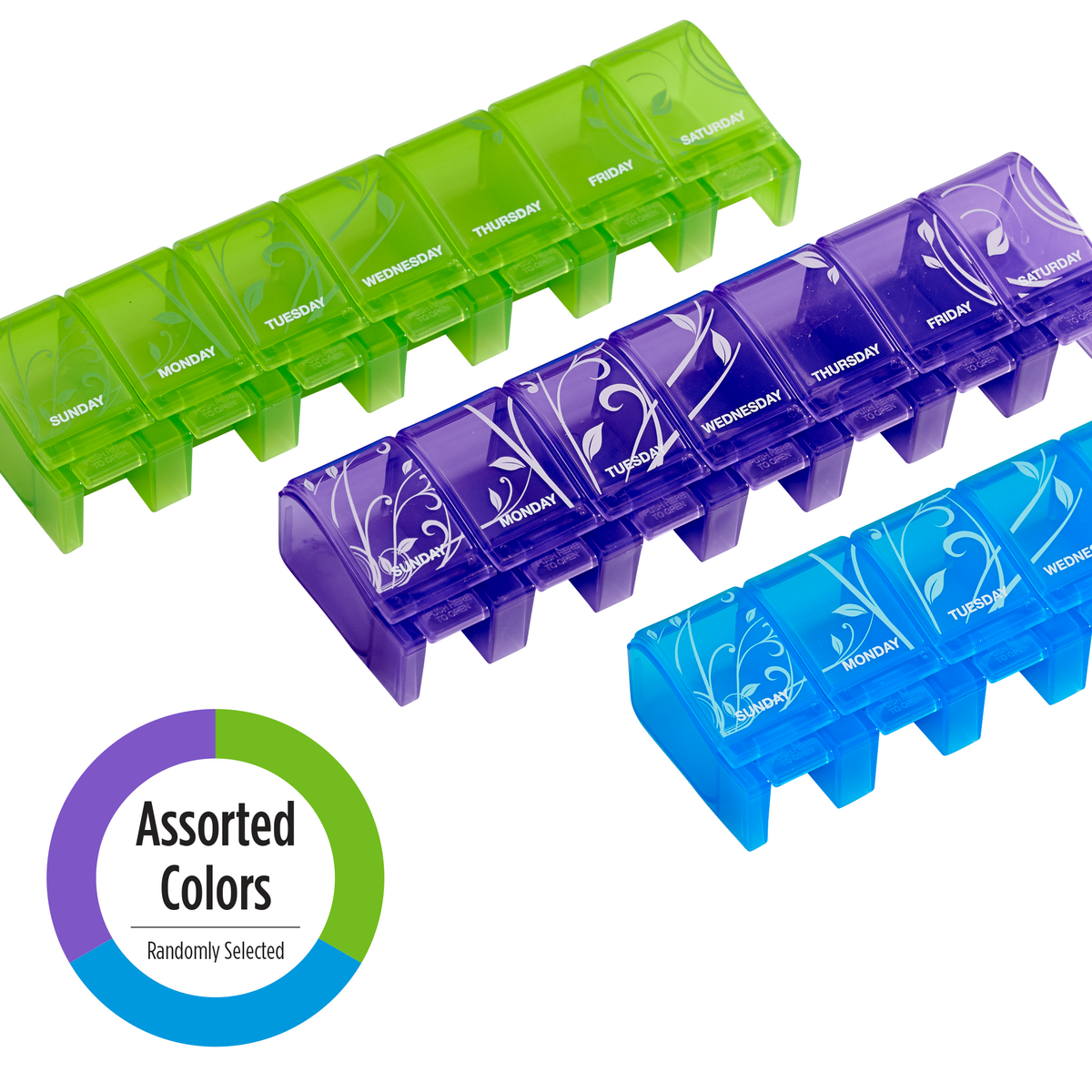 Ezy Dose Weekly Soft Touch Vitamen Planner - 7-Day Medication Reminder - This Extra Large Vitamen Organizer has a Contemporary Design and Soft - Touch Buttons for Easy Opening . This 7-Day Pill Planner has a sleek design and enough space to hold all of your weeks medication. Special Soft Touch buttons easily open the planner's compartments. The main features of the Soft Touch Vitamen Planner include: Easy Use - Soft Touch buttons easily open the planner's compartments. Modern Design - Contemporary design looks great in whatever place the planner is stored. Jumbo Compartments - The planner can fit 60 aspirin tablets and has plenty of room for all of your daily medications. About Ezy Dose:Ezy Dose is the leader in easy-to-use medication management products. Many of our push-button pill planners are endorsed by the Arthritis Foundation for our ease-of-use design. Ezy Dose products make living healthier simply easier with products like pill cutters, pill crushers and a full line of easy-fill planners.
