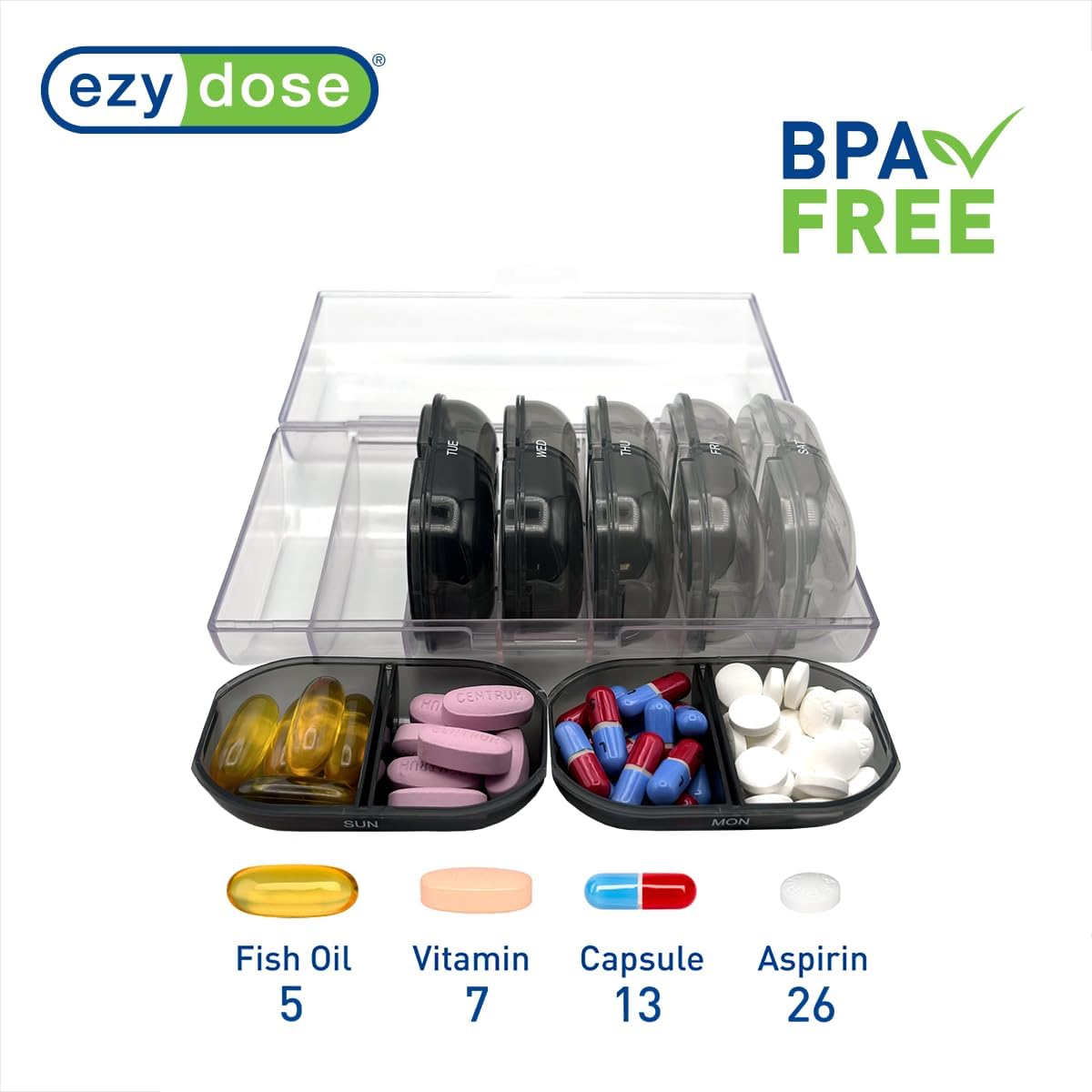 Ezy Dose® Weekly AM/PM Pill Organizer with Case (Black)
