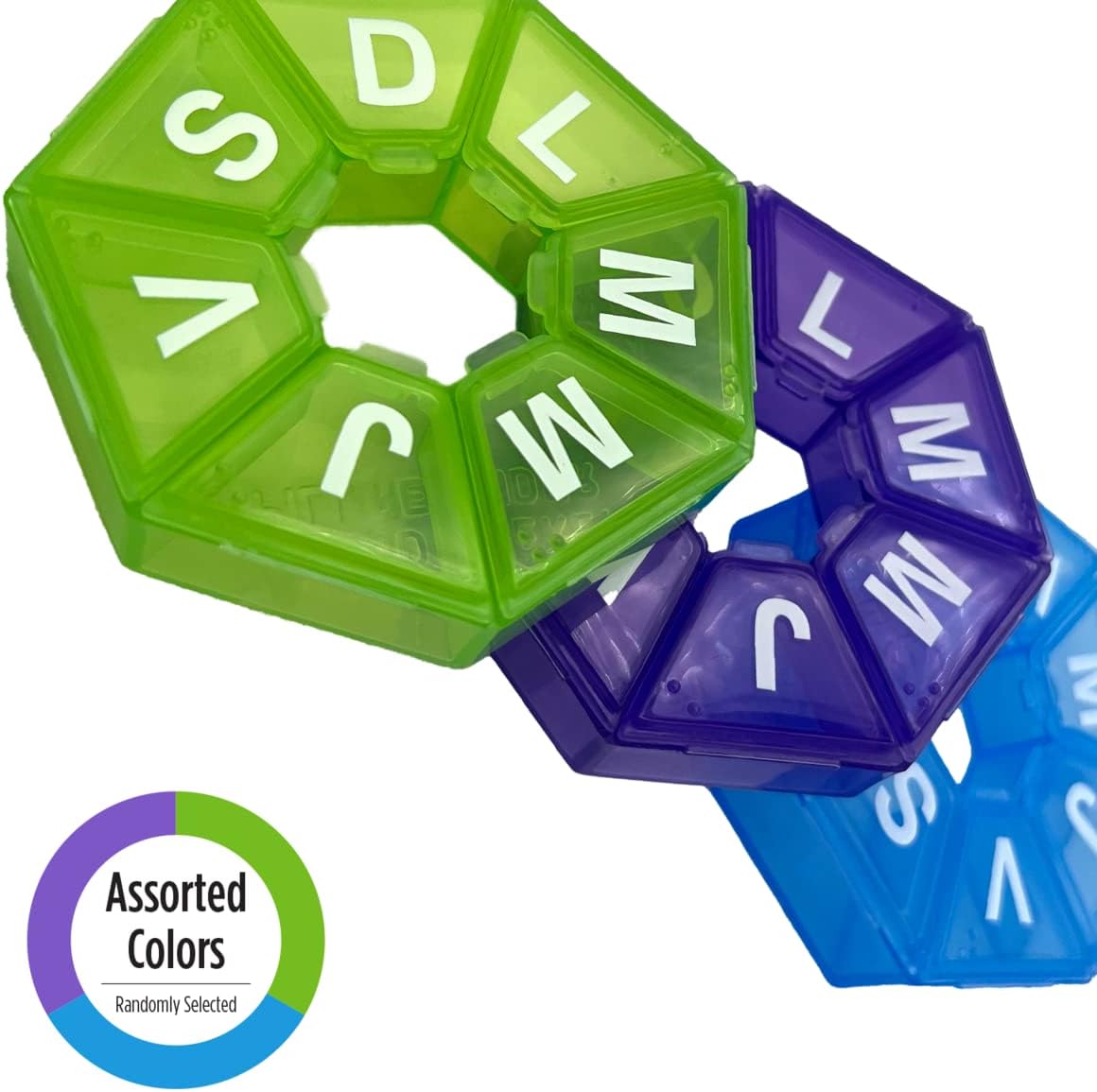 Ezy Dose 7-Sided Weekly Pill Planner seven day pill Planner - This weekly / seven day pill reminder is perfect for scheduling Your Week's Medication. Its seven sided Design and Transparent Lids Help Prevent Missed Doses and Allow for Easy Transportation and Discrete Storage>>Ezy Dose is the leader in easy-to-use medication management products. Ezy Dose products make living healthier simply easier with products like pill cutters, pill crushers and a full line of easy-fill planners.