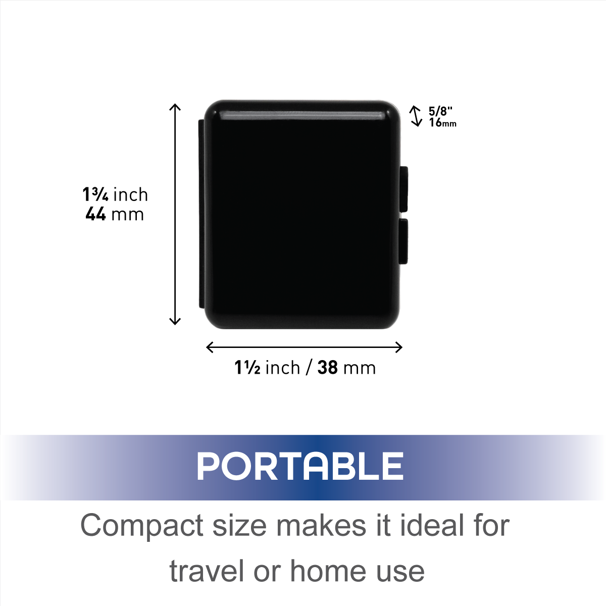 Remind N' Time portable pill containers are perfect for your busy lifestyle. The pocket size container allows you to take your medication or vitamins with you wherever you go. The snap-shut lids to prevent spilling.