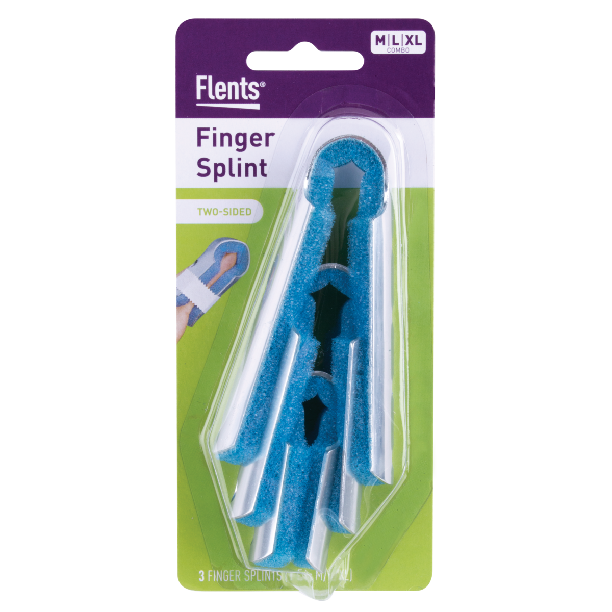 Flents Two Sided Splint Value Pack. This splint has a rigid but moldable frame that allows you to shape the brace for your comfort. The splint fully encompasses your finger to help immobilize it and expedite healing. Key features of the Baseball Splint include, comfortable fit, tape free design. The product has a sturdy metal bracing that can be molded for your comfort and is built to last. About Flents: Flents has developed a line of innovative personal care products. Popular products include Insty Splint finger splints, sleep masks, hot/cold water bottles, ice bags and eye patches. Flents products offer simple solutions for at-home health and wellness needs.