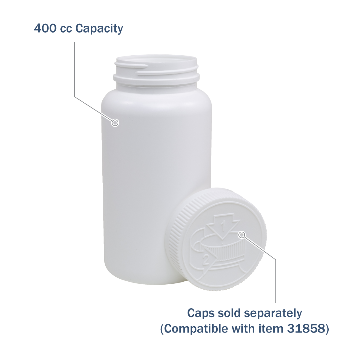 - Compatible with 53 mm child-resistant cap (product code 31858)