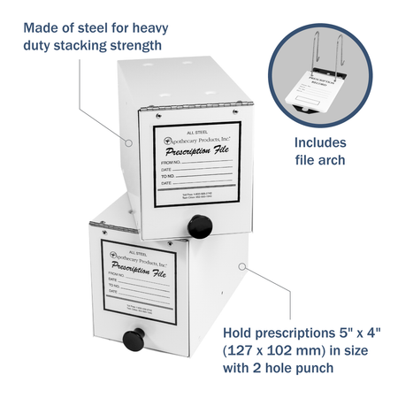 Apothecary Products Steel Prescription File Box (5" x 6 1/4" x 9 1/4")